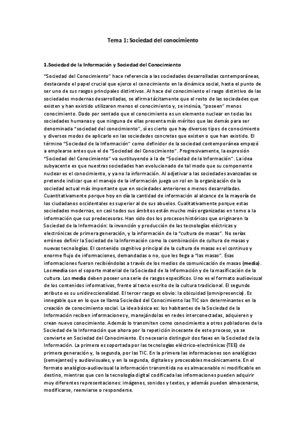He publicado nuevos apuntes de 1º Sociedad del conocimiento, tecnología y educación: Resumen asignatura Sociedad. Nota 9