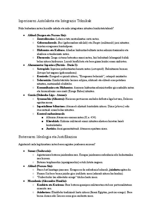 Antzinako Historiako azterketak prestatzeko eskema sintetizatu eta oso argia. Eduki nagusiak: Gizartearen hierarkia: Mesopotamia, Kreta, Grezia Mizenatarra, Atenas klasikoa eta Pertsia. Inperioen integrazioa: Akkad, Akemenestarrak eta Atenasko inperiali