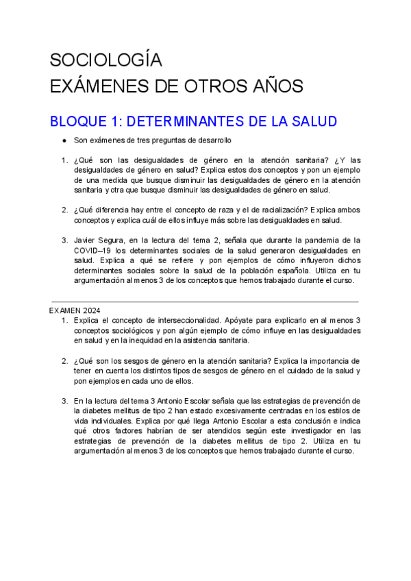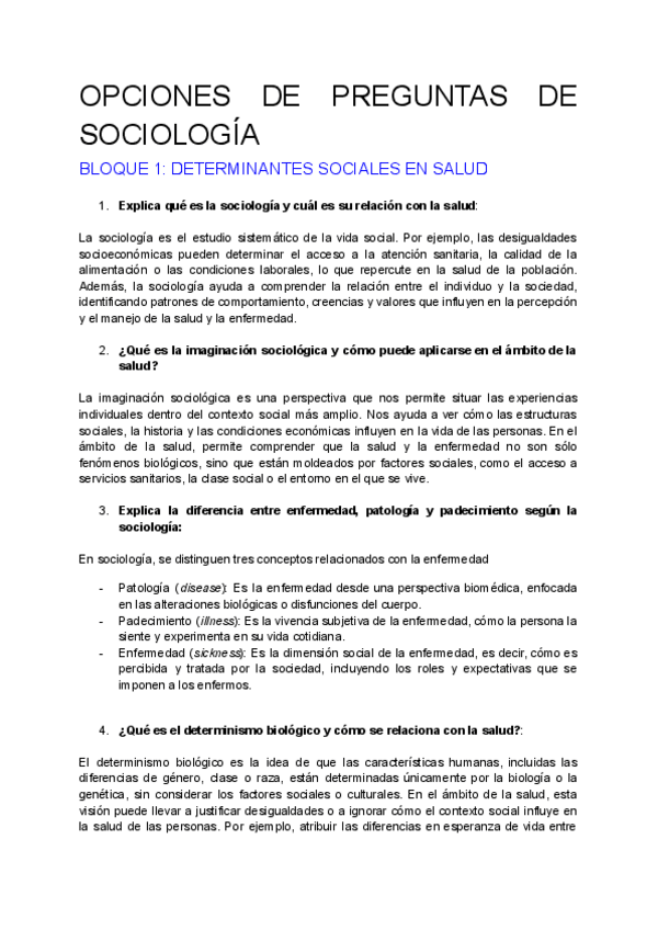 Todo el temario del Bloque 1 de sociología: Determinantes sociales en salud (están los 7 temas)