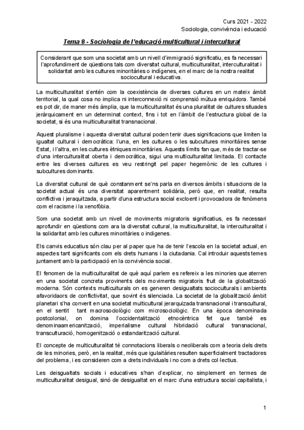 He publicado nuevos apuntes de 1º Sociología, Convivencia y Educación: 8-Sociologia-de-leducacio-multicultural-i-intercultural.pdf