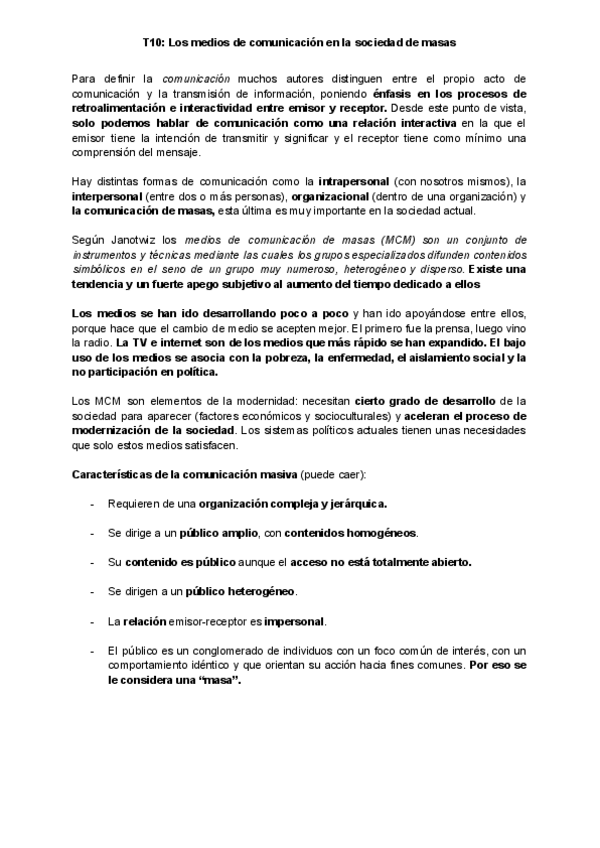 Apuntes sobre el T10 de Sociología de la Comunicación