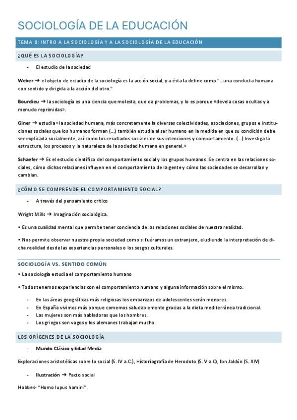 Temario y apuntes Sociología de la Educación