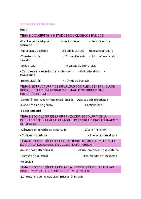 En este documento se encuentra todo el temario de desarrollo para el examen de sociología. S encuentran todos los temas del 1 al 5