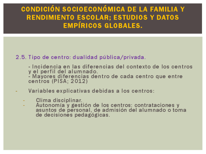 Clases sociales y escolarización Escuela pública y escuela privada. La segregación por niveles de rendimiento educativo Diferencias y desigualdades de género Diferencias y desigualdades entre las etnias