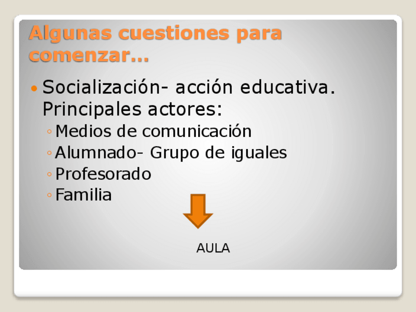 El proceso de socialización El grupo de iguales La escuela La inculcación de la racionalidad capitalista Pretensiones de poder y pretensiones de validez Relaciones sociales en el aula. Segregación o inclusión El currículo oculto