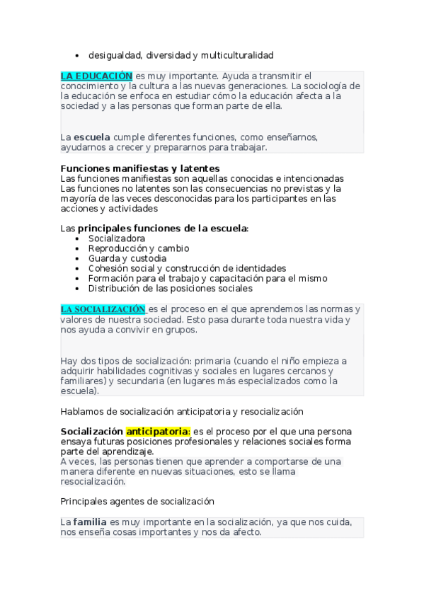 He publicado nuevos apuntes de 1º Sociología de la Educación: Conceptos IMPORTANTES sociología