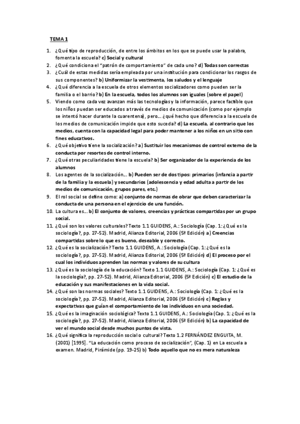 Preguntas con respuesta correcta para examen de Sociología de la Educación