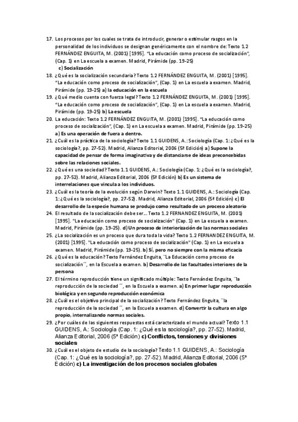 Preguntas con respuesta correcta para examen de Sociología de la Educación