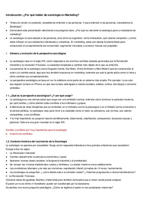 Apuntes de sociología de todo el cuatrimestre para el grado de marketing en inglés.