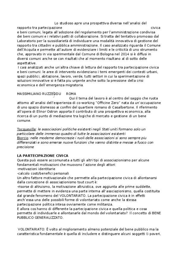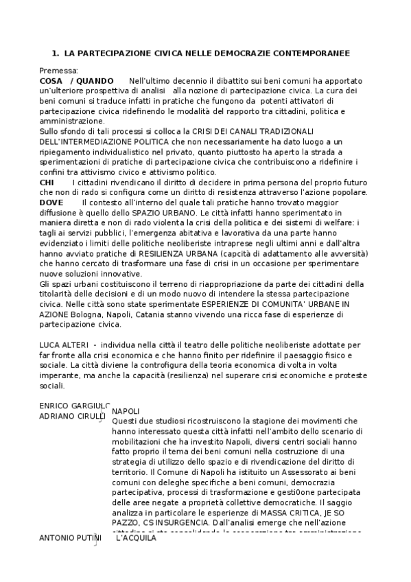 He publicado nuevos apuntes de 4º Sociologia dei fenomeni politici: RIASSUNTO-Partecipazione-civica-beni-comuni-e-cura-dellambiente.docx