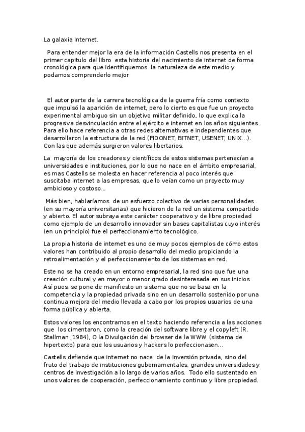 He publicado nuevos apuntes de 3º Sociologia del Consumo: LA GALAXIA INTERNET