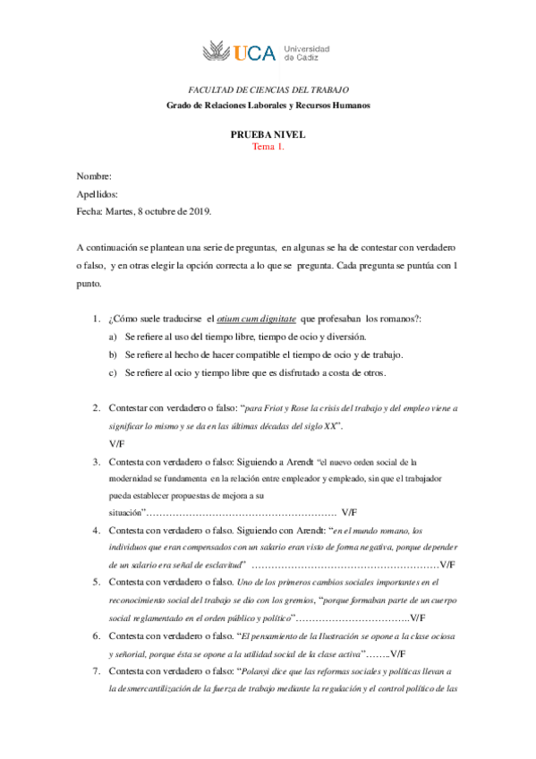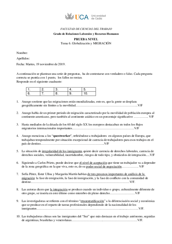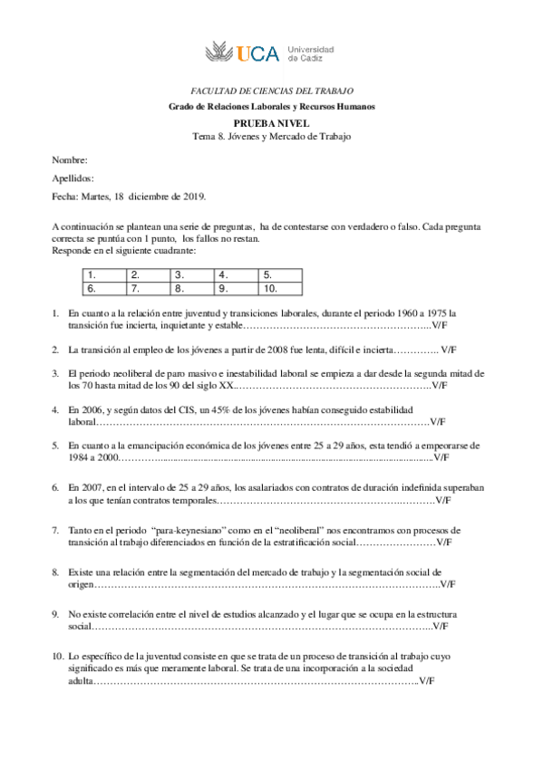 He publicado nuevos apuntes de 2º Sociología del Trabajo y del Empleo.: Pruebas de nivel