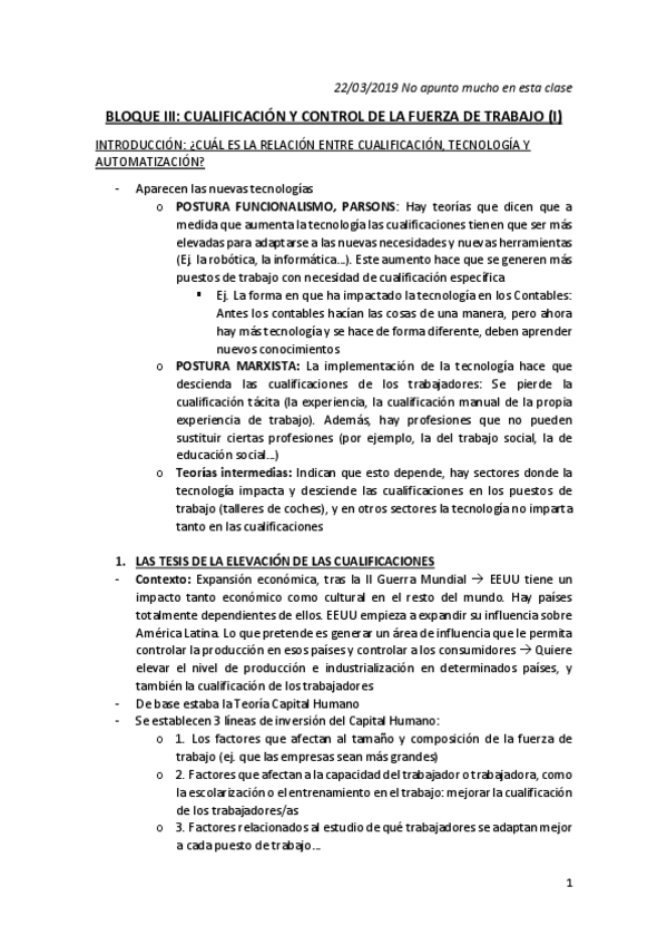 APUNTES DE CLASE SOCIOLOGÍA DEL TRABAJO