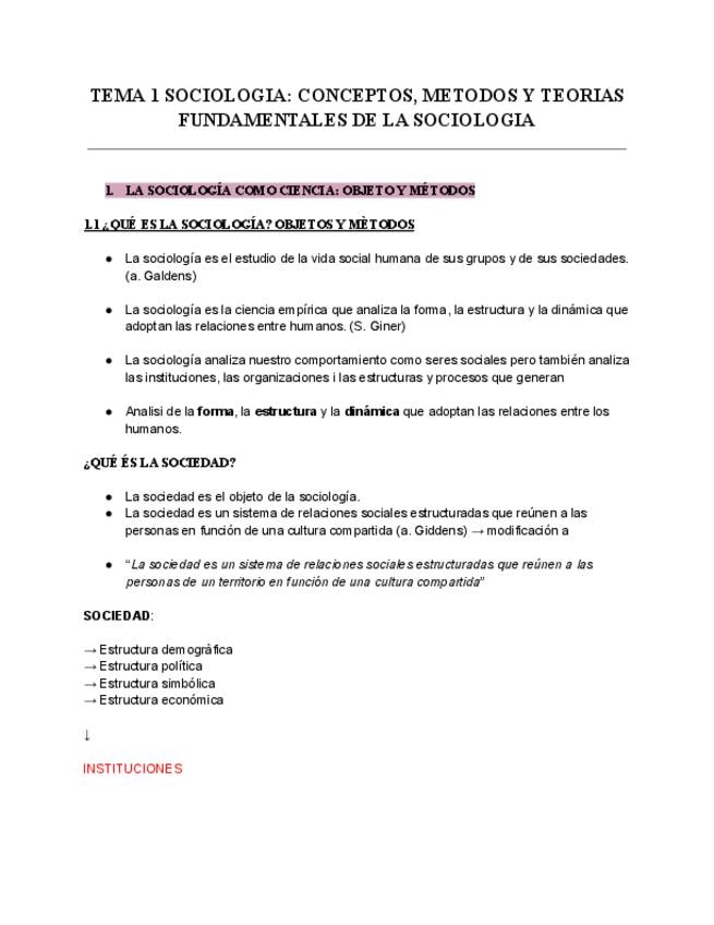 Apunts en català del Tema 1 de l'assignatura Sociologia General.