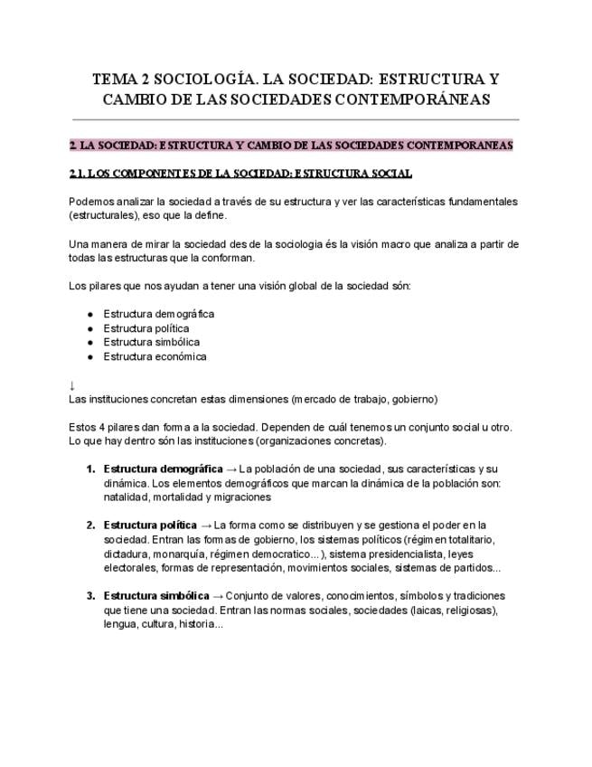 Apunts en català del Tema 2 de l'assignatura Sociologia General.