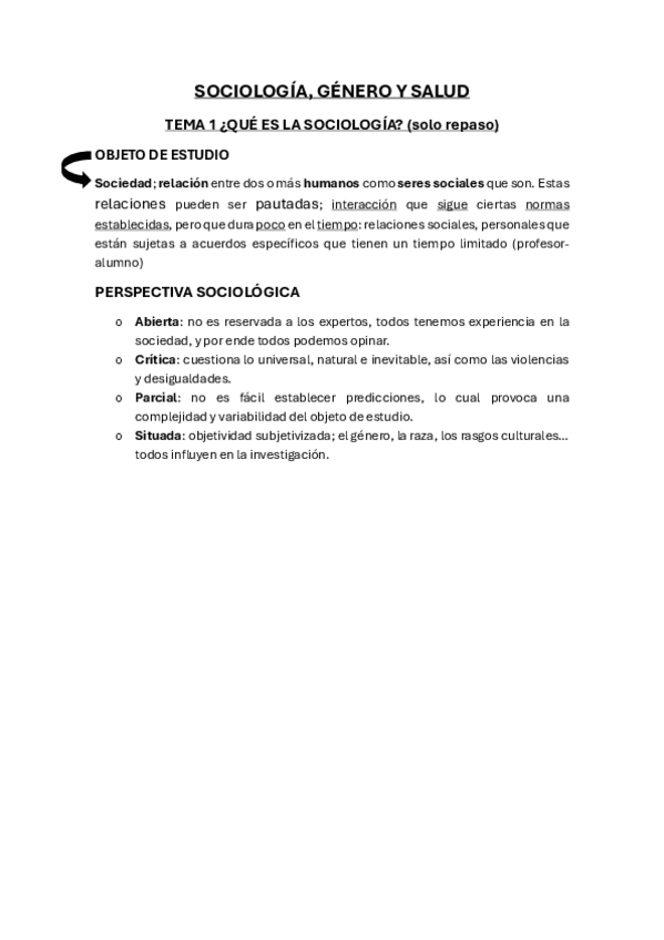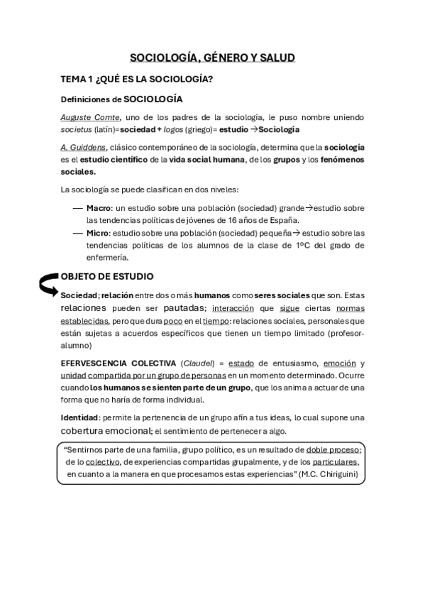 He publicado nuevos apuntes de 1º Sociología, Género y Salud: Sociología
