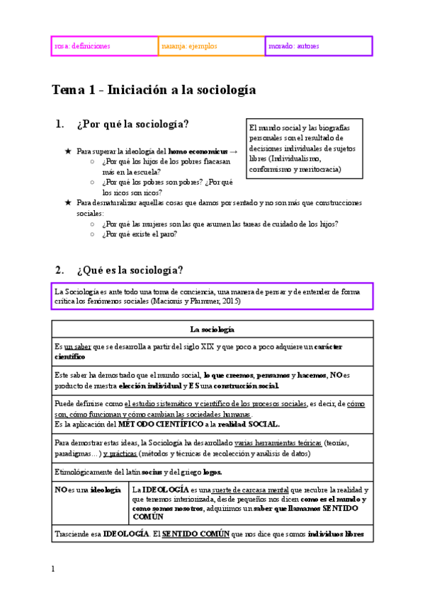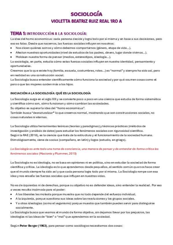 Apuntes tema 1 y 2 sociología, patricia
