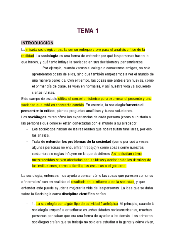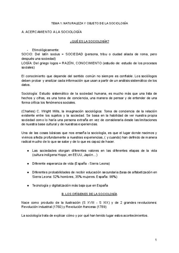 SOCIOLOGÍA TEMA 1-2-3 y dos primeros puntos del tema 4 Son las diapositivas copiadas más el temario ya ampliado de los documentos del libro, listo para estudiar y tú poderlos resumirlo más
