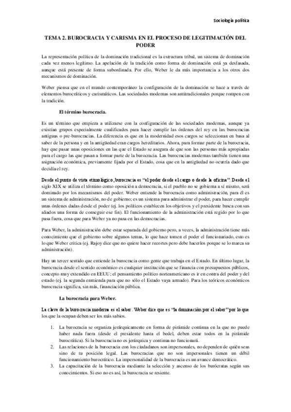 He publicado nuevos apuntes de 3º Sociología Política: Tema 2. Burocracia y carisma en el proceso de legitimación del poder.pdf
