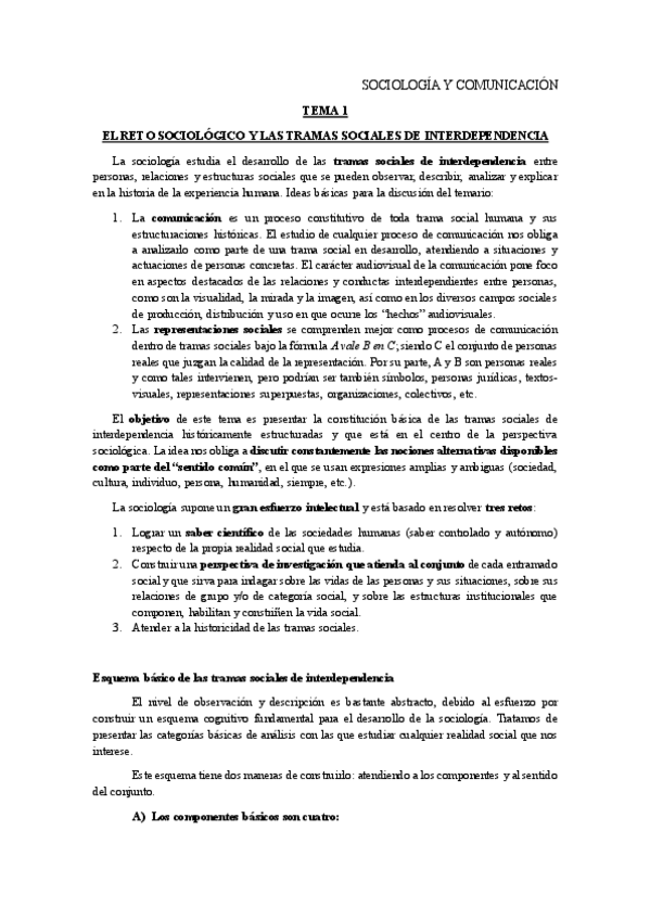 TEMARIO SOCIOLOGÍA Y COMUNICACIÓN