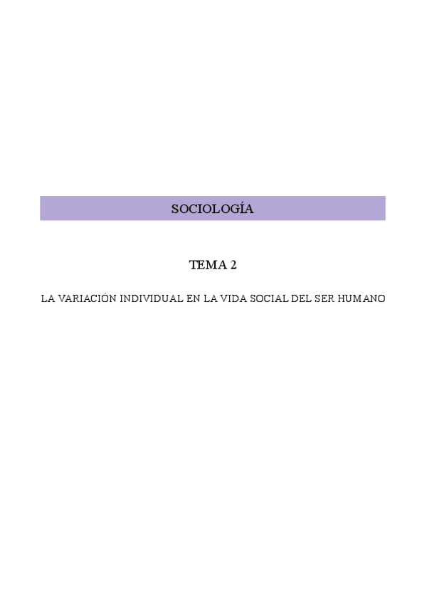Resumen Librillo de Apuntes Sociología y Estructura Social: La variación individual en la vida social del ser humano
