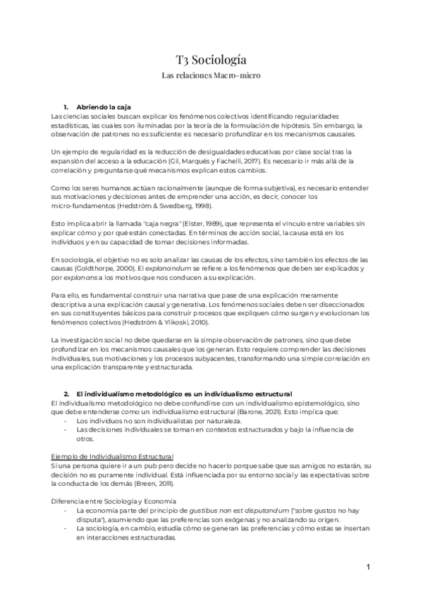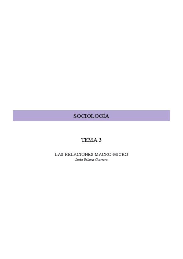 Resumen Librillo de Apuntes Sociología y Estructura Social: Las Relaciones Macro – micro
