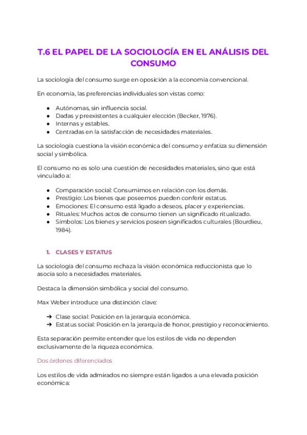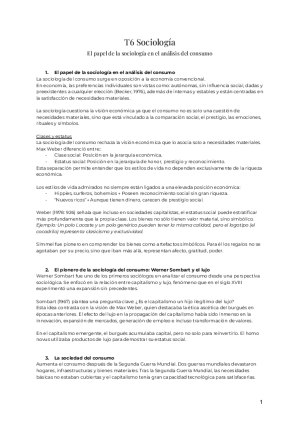 Resumen Librillo de Apuntes Sociología y Estructura Social: El Papel de la Sociología en el Análisis del Consumo