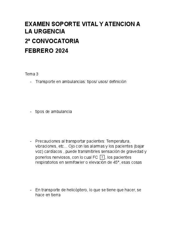 FEBRERO 2024 EXAMEN SOPORTE VITAL Y ATENCION A LA URGENCIA
