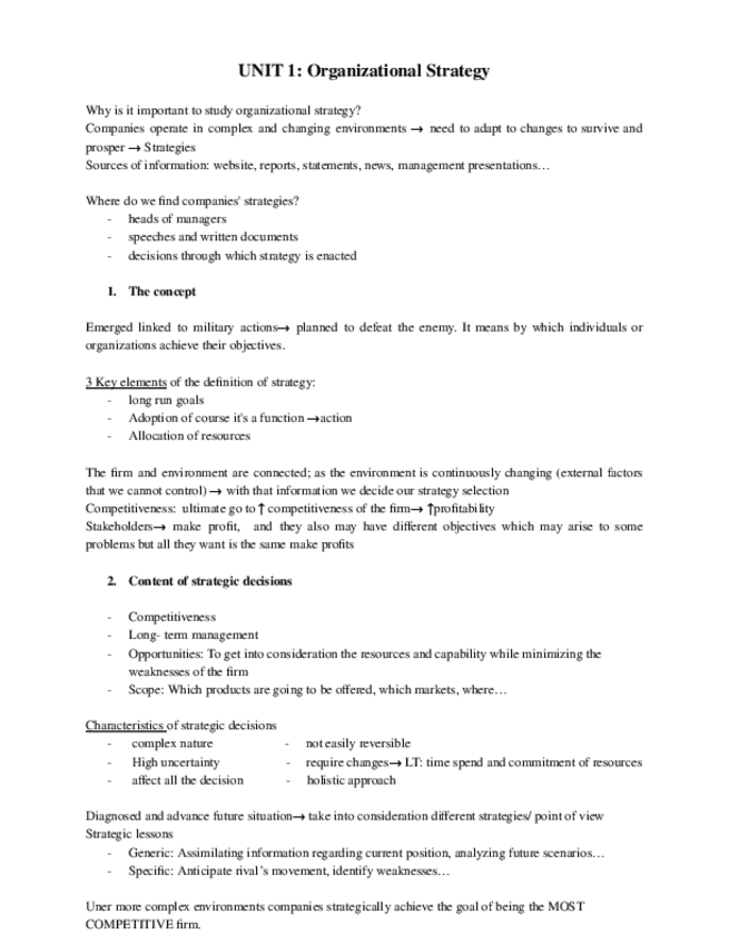 He publicado nuevos apuntes de 3º Strategic Management I: Notes - Strategic management I