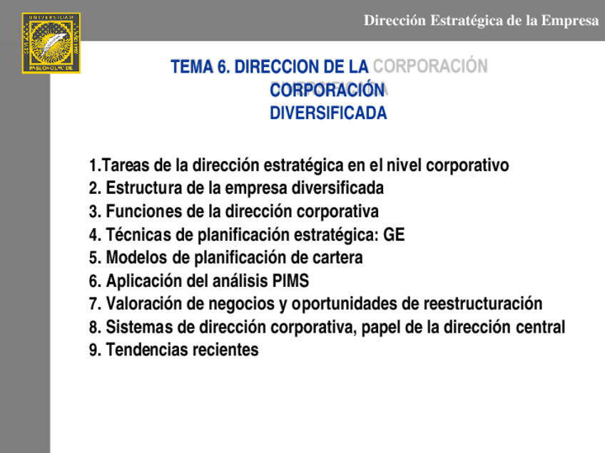 Temario Dirección Estratégica II
