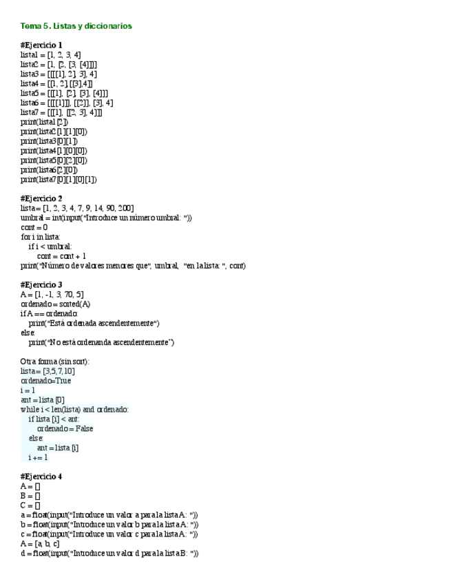 He publicado nuevos ejercicios de 1º Taller de Programación: Tema-5.-Listas-Ejercicios.pdf
