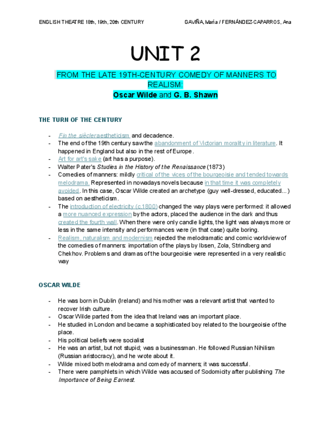He publicado nuevos apuntes de 2º Teatro inglés de los siglos XIX a XXI: UNIT-2.pdf