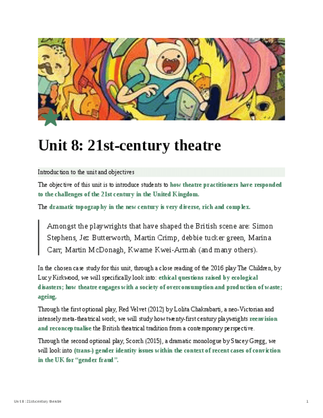 He publicado nuevos apuntes de 2º Teatro inglés de los siglos XIX a XXI: Unit-8-21st-century-theatre.pdf