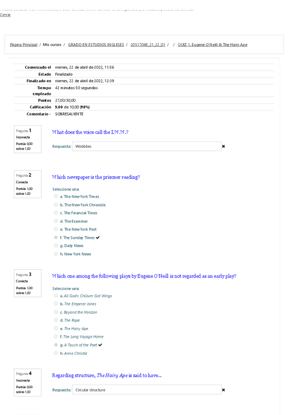 He publicado nuevos practicas de 4º Teatro Inglés y Norteamericano II: Prácticas corregidas