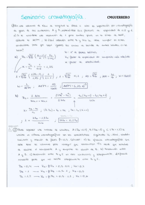 Se encuentran RESUELTOS TODOS LOS EJERCICIOS de los SEMINARIOS de la asignatura de TAS, tanto de EXTRACCIONES LÍQ-LÍQ como de CROMATOGRAFÍA DE LIQ