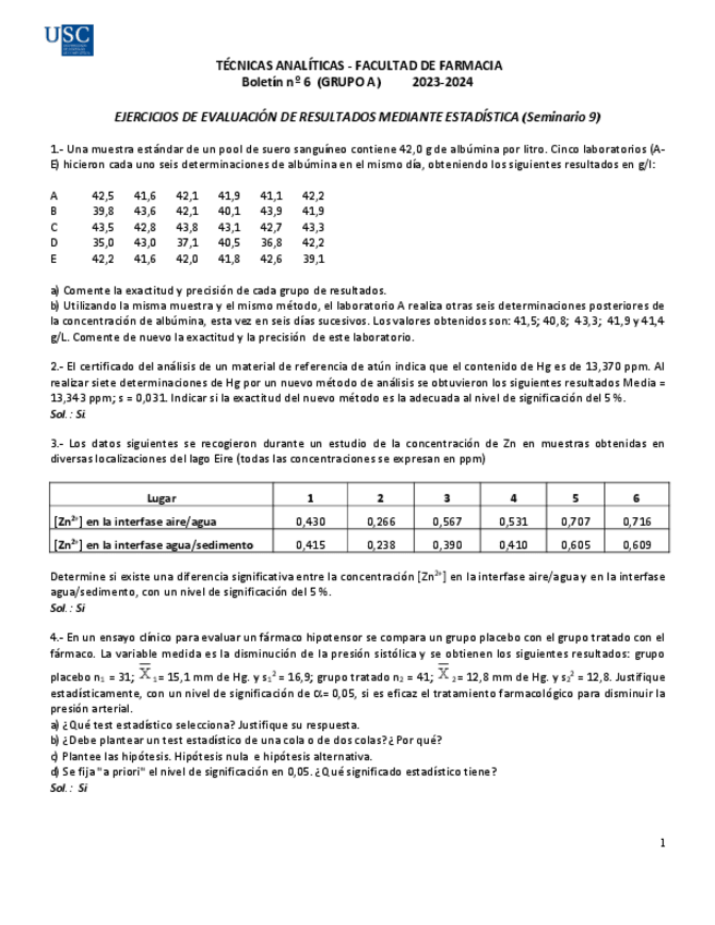 He publicado nuevos ejercicios de 1º Técnicas Analíticas: Ejercicios entrega seminario 23-24