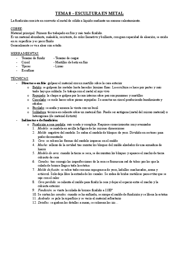 He publicado nuevos apuntes de 1º Técnicas Artísticas: TEMA-8.-LA-FUNDICION-ESCULTURA-EN-METAL.-lgomoro04.pdf