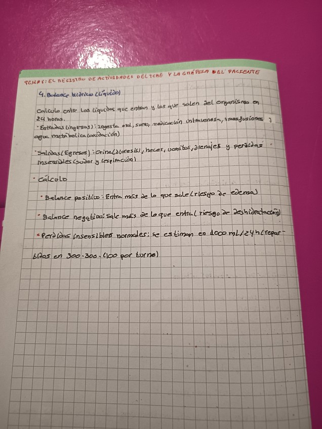 Esquema super resumido. Tema 8 El registro de actividades del TOCAR y la gráfica del paciente