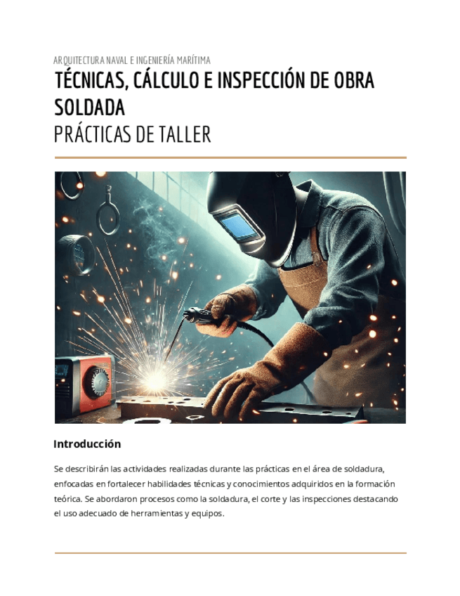 He publicado nuevos practicas de 3º Técnicas, cálculo e inspección de obra soldada: Informe soldadura e inspección (1).pdf