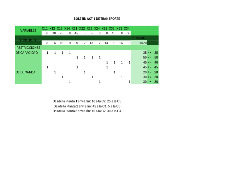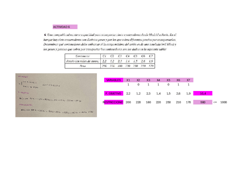 ACTIVIDADES PL SOLVER MOCHILA, TRANSPORTE Y ASIGNACIÓN