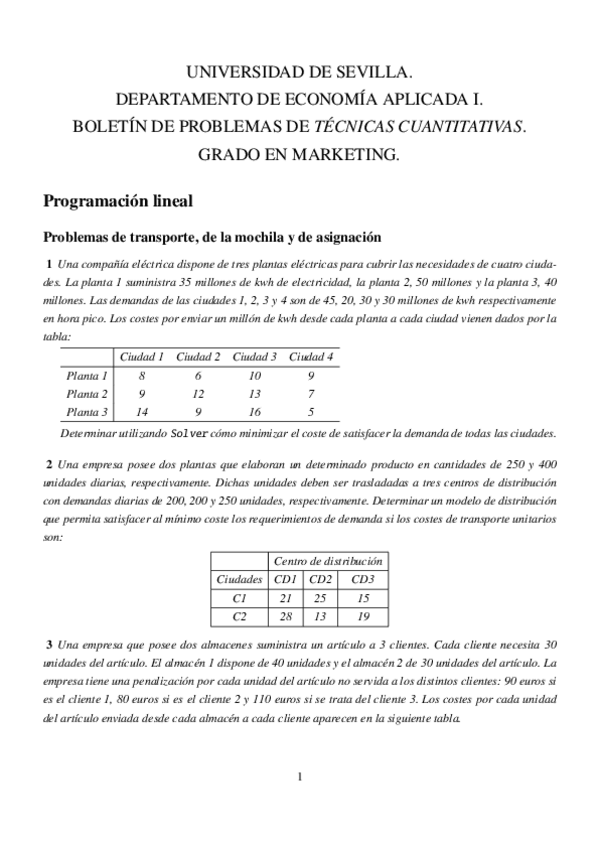 He publicado nuevos ejercicios de 2º Técnicas Cuantitativas: BOLETÍN DE PROBLEMAS 2 RESUELTO (TRANSPORTE, MOCHILA Y ASIGNACIÓN).xlsx