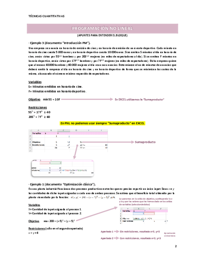 Apuntes por bloques (Programación lineal y no lineal) Técnicas Cuantitativas de la profesora Yolanda Hinojosa
