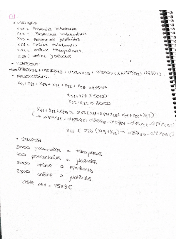 He publicado nuevos apuntes de 2º Técnicas Cuantitativas: Ejercicios boletín Programación No Lineal (Segundo Parcial))