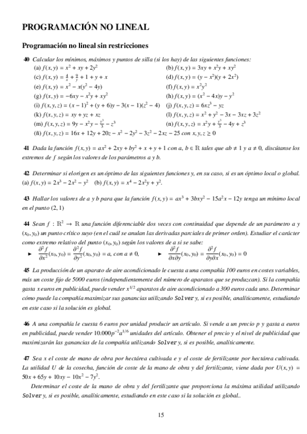 Ejercicios boletín Programación No Lineal (Segundo Parcial))