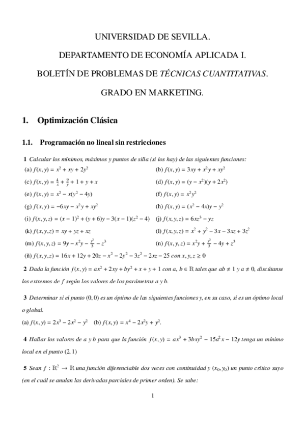 Boletín de ejercicios Programación Lineal y No Lineal (Curso 2023-24)