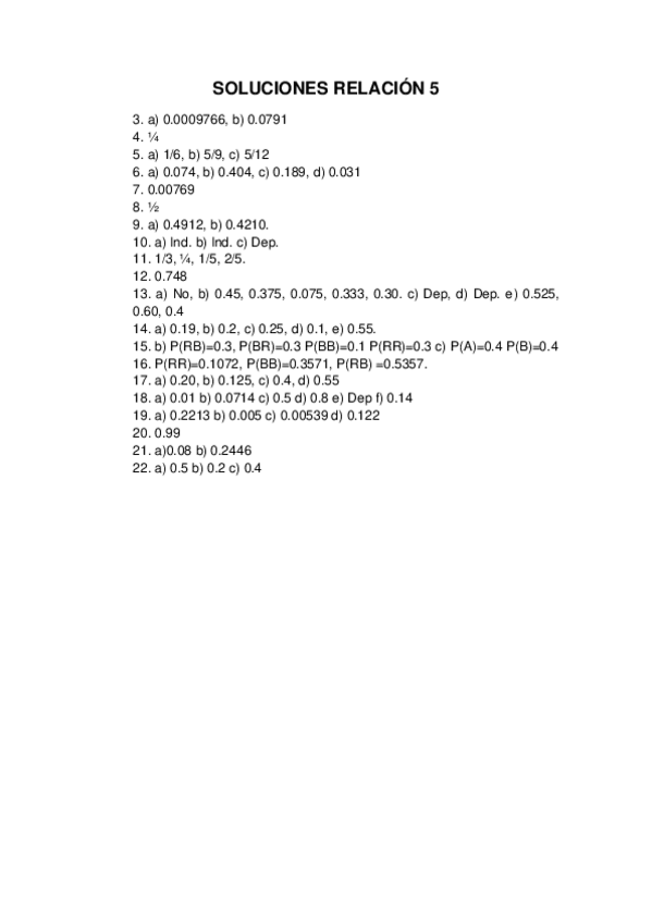 Relaciones de ejercicios y soluciones