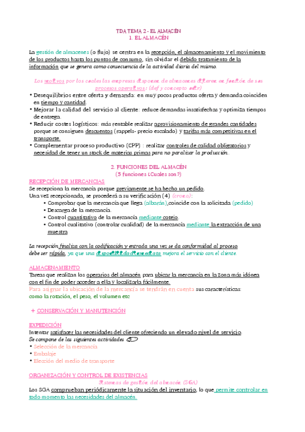 Apuntes + Esquema del tema 2 de almacén!!