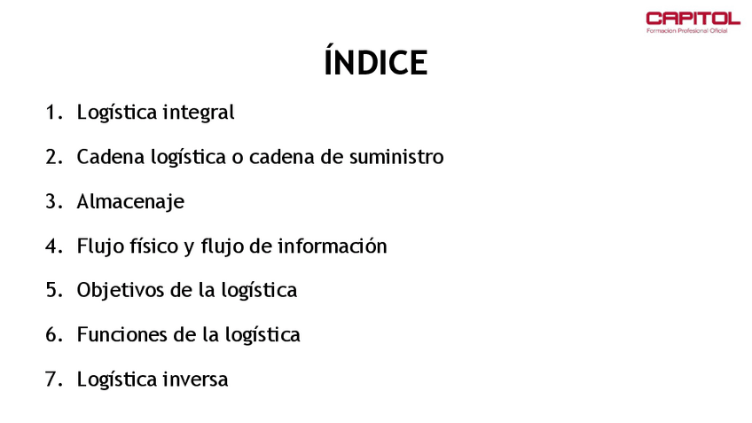 Esquemas de clase del Tema 1 de Técnicas de almacén, del ciclo formativo ACTIVIDADES COMERCIALES