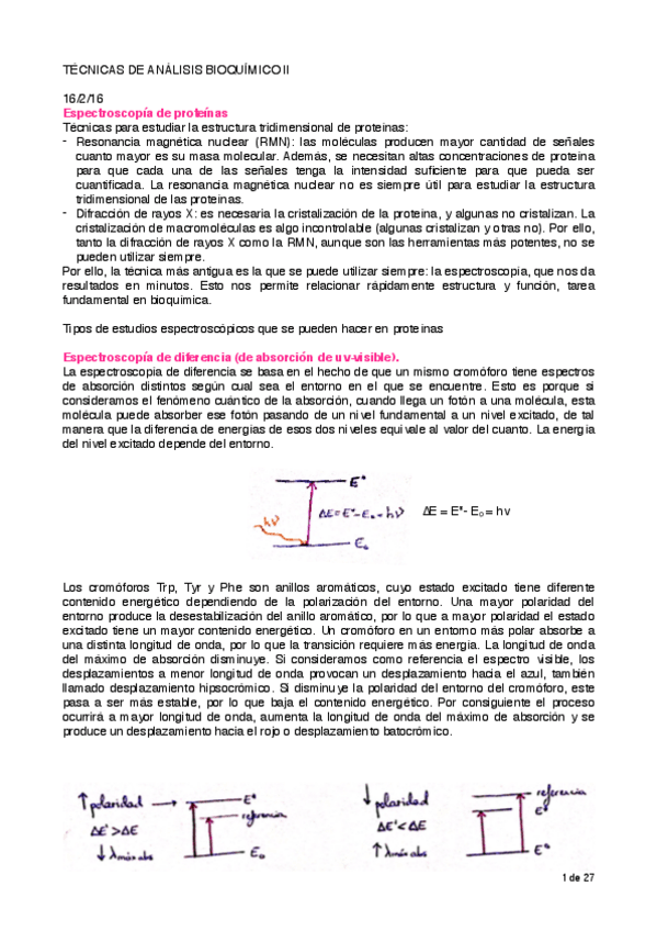 He publicado nuevos apuntes de 2º Técnicas de Análisis Bioquímico II: Parcial 1- Espectroscopía de proteínas.pdf