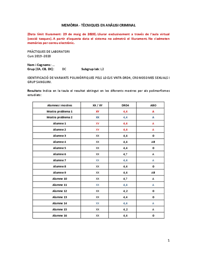 He publicado nuevos practicas de 2º Técnicas de Análisis Criminal: MemorialaboratoriGenetica2020val.pdf